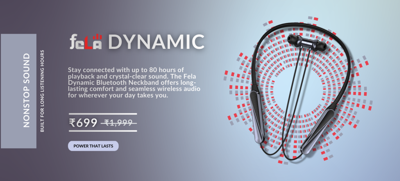 feLA Dynamic Bluetooth Neckband – Powerful Sound, Unmatched EnduranceExperience powerful sound and all-day comfort with the feLA Dynamic Bluetooth Nec..